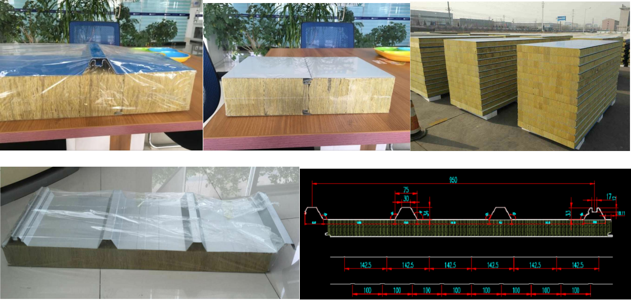 This panel features galvanized pre-painted steel sheets for top and bottom surfaces, with 5-component rockwool adhesive as the core material. Formed by heating, foaming and laminating, its rockwool core excels in thermal and sound insulation. It is widely applied to walls and roofs of cold storages, industrial workshops, public buildings and more.